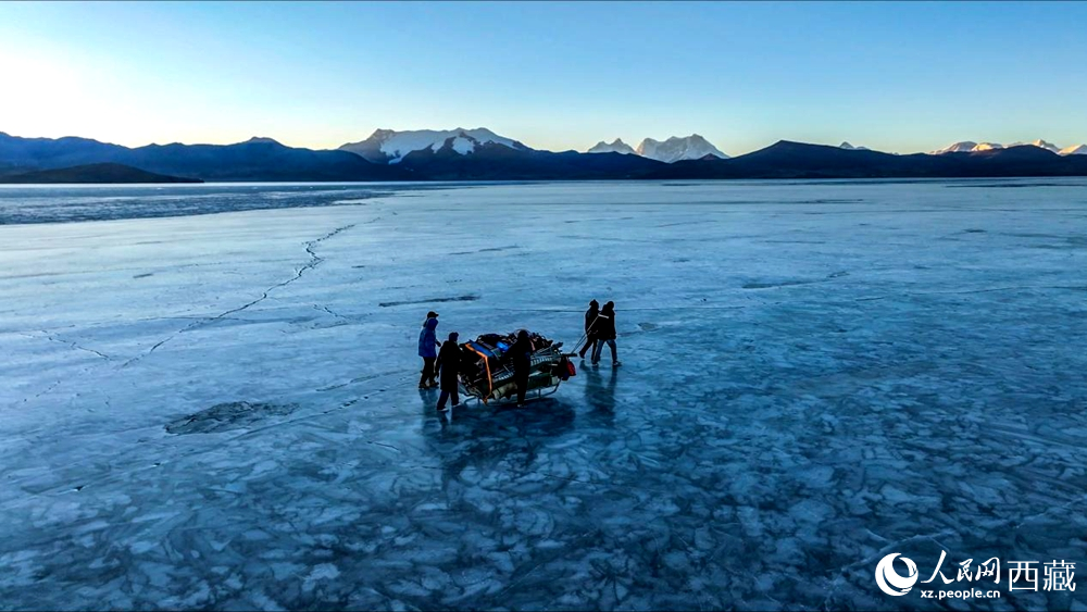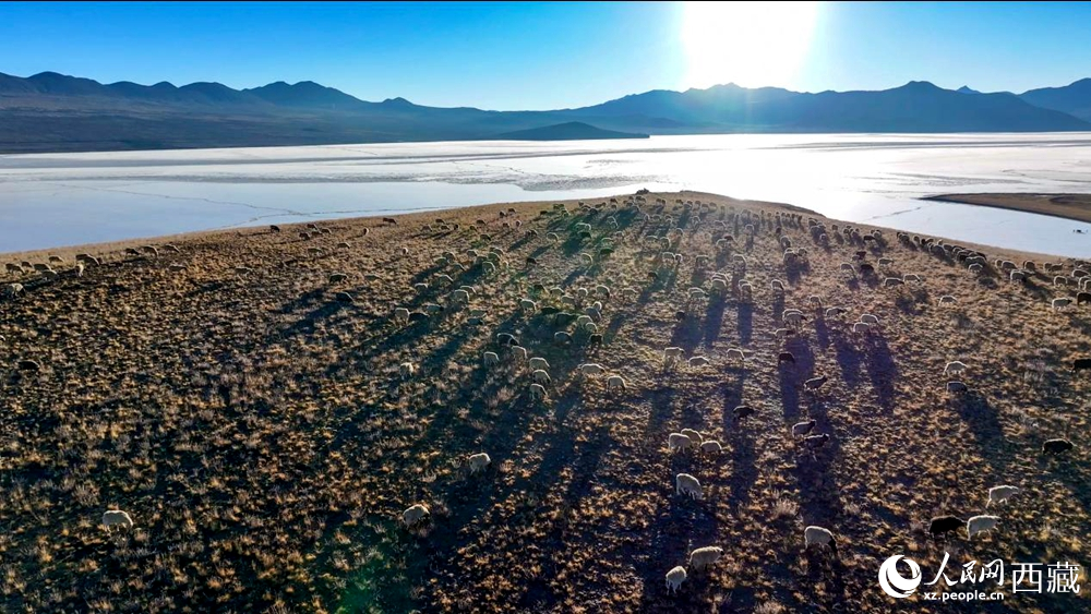 普莫雍錯(cuò)“冰上趕羊”,是當(dāng)?shù)啬撩袷来鄠鞯墓爬现腔邸C磕甓?,由于推瓦村海拔高、夏季短,草?chǎng)無(wú)法為羊群提供充足的過(guò)冬飼料。因此,每年高原最冷的時(shí)候,推瓦村牧民會(huì)把羊群趕到普莫雍錯(cuò)水草豐茂的湖心島,依靠島上的草料度過(guò)最寒冷的冬期。