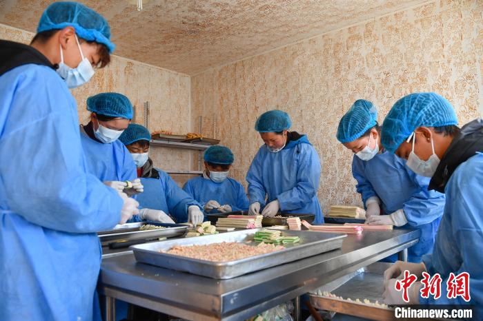 2月10日,西藏拉薩市林廓北路一家卡塞店里,工人在擺放制作好的卡塞?!翱ㄈ笔且环N油炸面食,是藏歷新年必不可少的食物。隨著藏歷新年的日益臨近,古城拉薩各個(gè)加工銷售“卡塞”的店鋪飄出陣陣香味。中新社記者 貢嘎來松 攝