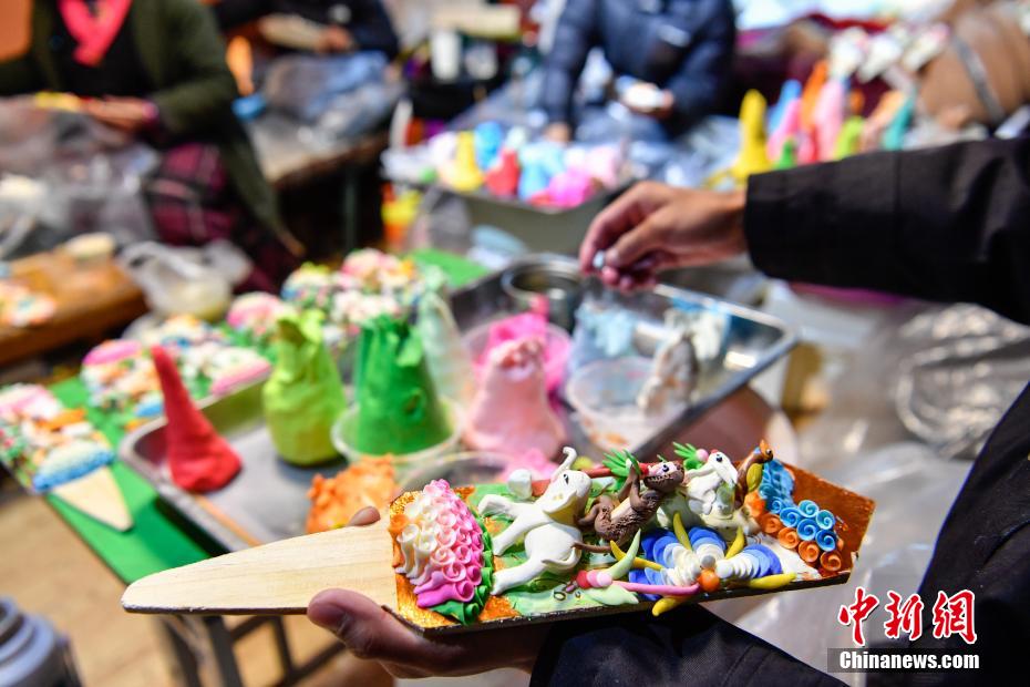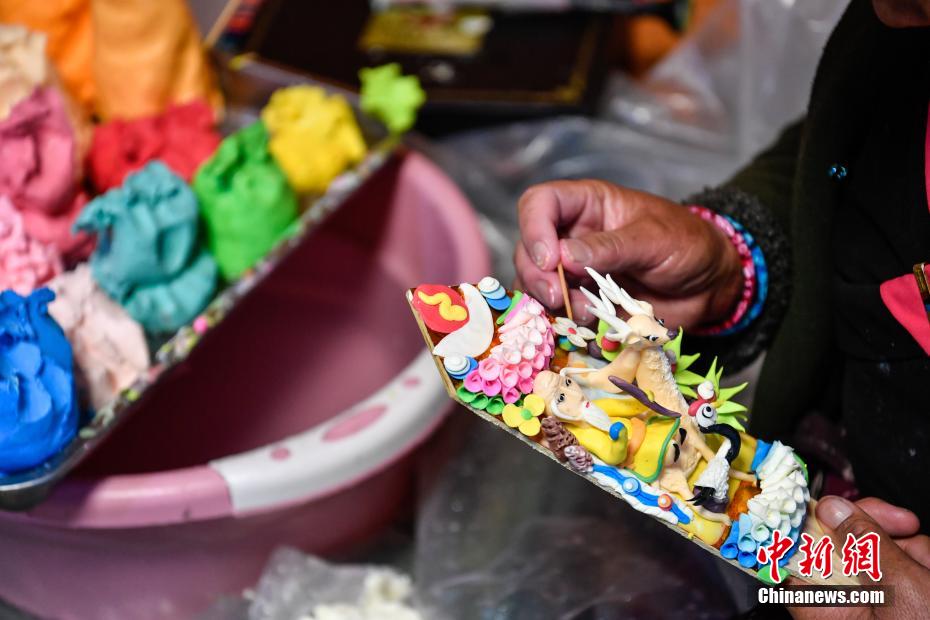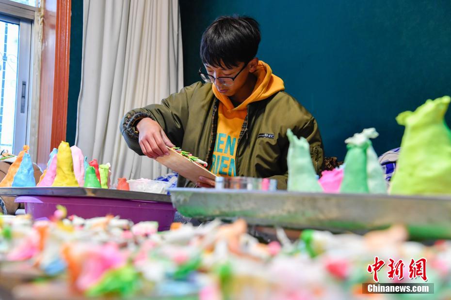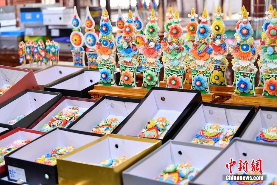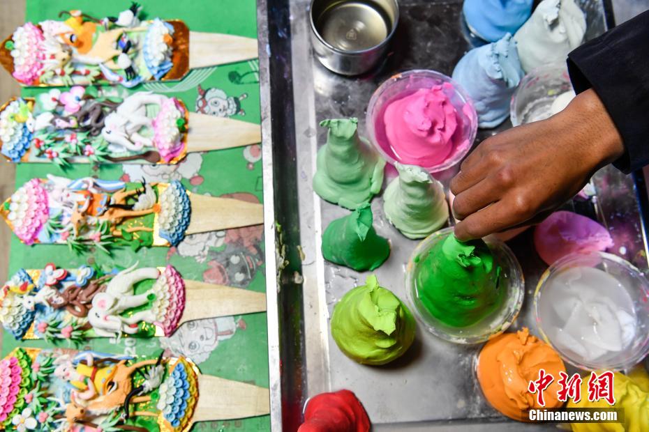 2月15日,手工藝人在拉薩制作酥油花。隨著藏歷新年臨近,酥油花在拉薩年貨市場上熱銷。酥油花在藏語中稱為“孜扎”,是藏族民眾家庭中必備的年貨之一。