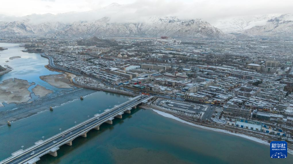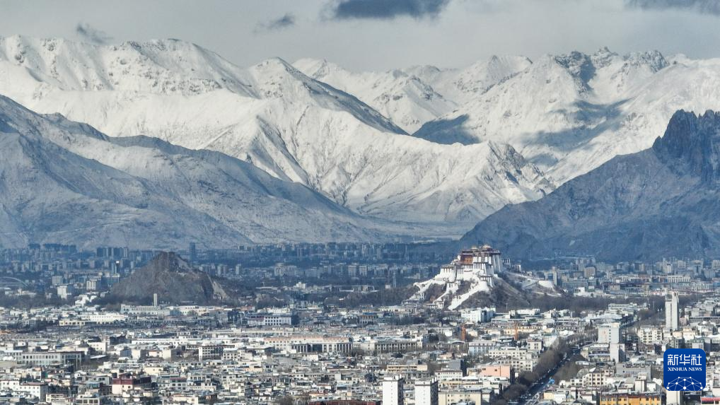這是2月16日拍攝的降雪后的拉薩市區(qū)(無(wú)人機(jī)照片)。新華社記者 晉美多吉 攝