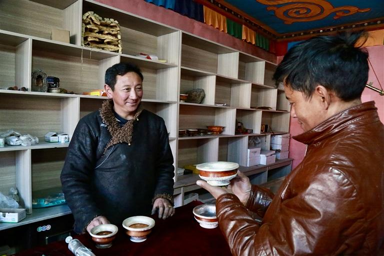 43歲的次央多吉是墨竹工卡縣級(jí)非物質(zhì)文化遺產(chǎn)阿吉祖玉傳承人。這份傳承的使命,自他的祖輩起便已延續(xù)。在他的記憶中,長(zhǎng)輩們熟練掌握這項(xiàng)非遺技藝的身影,深深烙印在他的心中?!鞍⒓嬗袷亲嫦葌飨聛淼臇|西,不能丟。”抱著這樣堅(jiān)定的想法,次央多吉在年少時(shí)便立下決心,要將這門技藝傳承下去,并不斷發(fā)揚(yáng)光大。