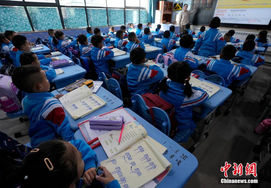 3月10日,拉薩市第一小學(xué)一年級(jí)八班學(xué)生們正在上藏語文課。當(dāng)日,西藏拉薩市春季學(xué)期開學(xué),各項(xiàng)教學(xué)工作有序開展。中新社記者 李林 攝