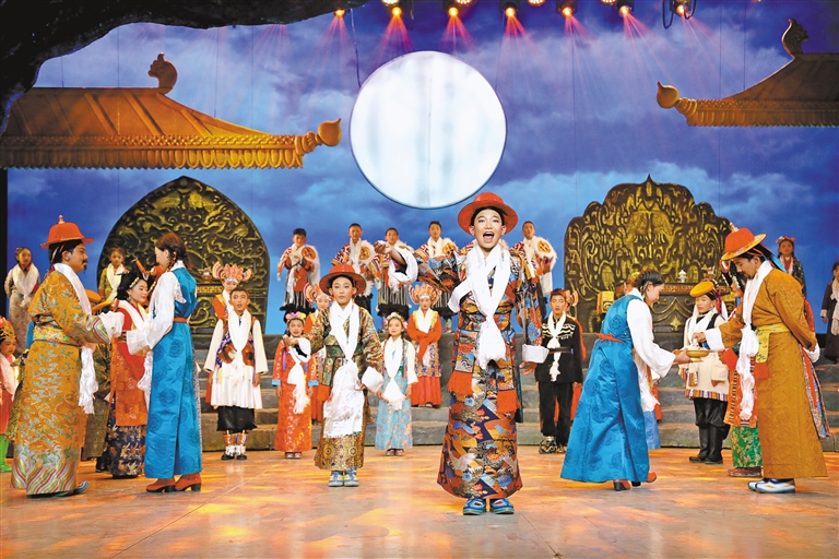 少兒舞臺劇藏戲《頓月頓珠》以傳統(tǒng)八大藏戲的故事為藍(lán)本,以人與自然和諧相處、人類命運共同體和親情為主題,講述了兩位同父異母的王子頓珠與頓月被迫逃亡到最終獲得幸福人生的故事。