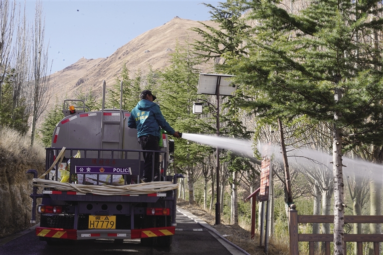 在南山公園,記者看到工人們正忙著給樹澆水。南山公園安保人員扎西次旺告訴記者:“雖然我是負(fù)責(zé)安保工作的,但是我不忙的時(shí)候也會(huì)去給樹澆水,因?yàn)檫@里的每一棵樹、每一株草對于我們而言都有非常大的意義。通過大家的努力,我相信我的家鄉(xiāng)會(huì)變得越來越綠,生態(tài)環(huán)境也會(huì)越來越好?!?/p>