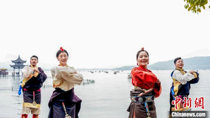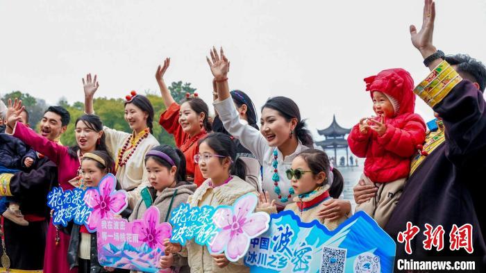 活動當(dāng)天,身著彩云紋藏裝的波密兒女踏歌而來,沿著斷橋、雷峰塔等西湖文化地標(biāo),開啟流動的藝術(shù)巡演。藏式廣袖輕揚(yáng)間掠過湖光,自發(fā)加入的游客與藏族演員即興共舞,在千年勝景中勾勒出民族交往交流交融的動人圖景。活動現(xiàn)場,熱情的藏族姑娘、藏族小伙為參與互動的游客送上“桃花氣球”和文創(chuàng)禮品,將高原春日的印記留在江南水岸。