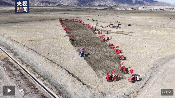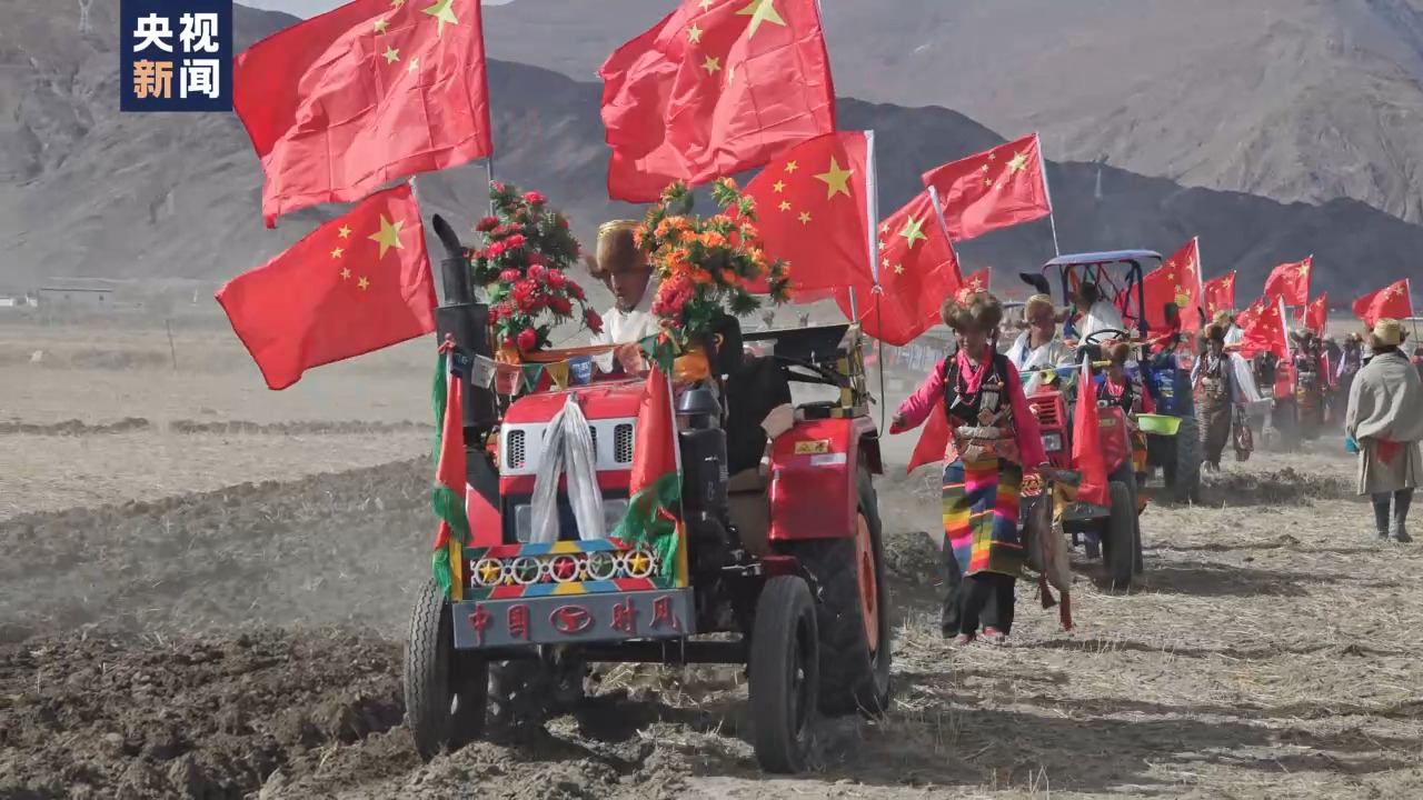 村民們跳起歡快的傳統(tǒng)舞蹈拉孜堆諧,40多臺(tái)身著“盛裝”的拖拉機(jī)則在青稞地里犁出了一首“春耕進(jìn)行曲”。