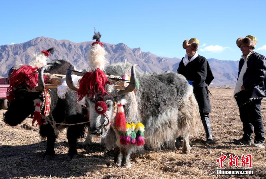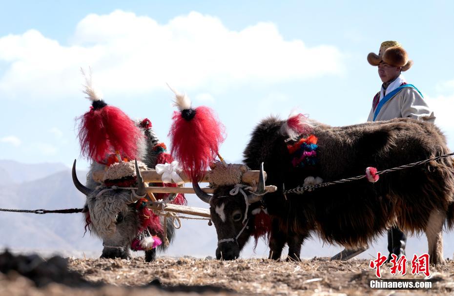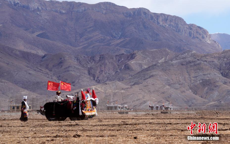 3月16日,是西藏農(nóng)區(qū)開耕的日子。村民身著節(jié)日盛裝,相聚在田間。傳統(tǒng)的“二牛抬杠”開啟“第一犁”后,拖拉機(jī)緊隨其后,婦女將手中的種子撒下,祈求風(fēng)調(diào)雨順、農(nóng)業(yè)豐收。圖為西藏拉薩市林周縣強(qiáng)嘎鄉(xiāng)春耕儀式現(xiàn)場,“二牛抬杠”開啟“第一犁”。中新社記者 李林 攝