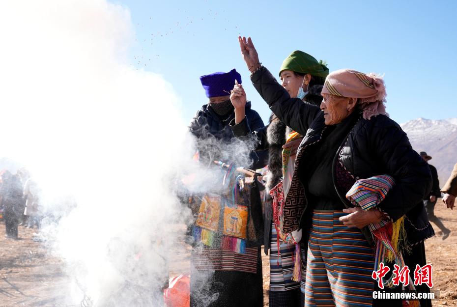 3月16日,是西藏農(nóng)區(qū)開耕的日子。村民身著節(jié)日盛裝,相聚在田間。傳統(tǒng)的“二牛抬杠”開啟“第一犁”后,拖拉機(jī)緊隨其后,婦女將手中的種子撒下,祈求風(fēng)調(diào)雨順、農(nóng)業(yè)豐收。圖為西藏拉薩市林周縣強(qiáng)嘎鄉(xiāng)春耕儀式現(xiàn)場,村民煨桑。中新社記者 李林 攝