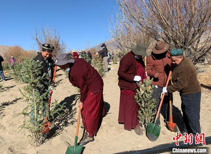 圖為各界民眾參與西藏山南市乃東區(qū)“民族團結情共建同心林”植樹活動。李勝利 攝