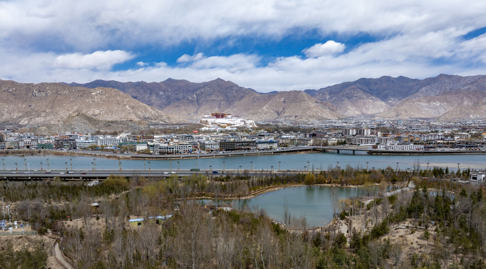 拉薩坐落于狹長的河谷地帶,拉薩河蜿蜒穿城,兩岸南山與北山連綿起伏。在布達(dá)拉宮正南方,綠色的南山與市區(qū)隔河相望,山間灌木與喬木錯(cuò)落有致,綠意盎然。
