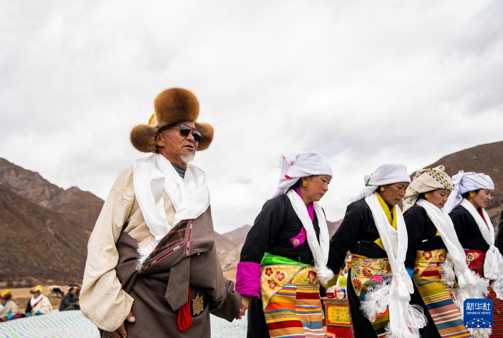 旺慶老人(右)在春耕大典上為客人敬酒獻(xiàn)唱(3月16日攝)。新華社記者 晉美多吉 攝