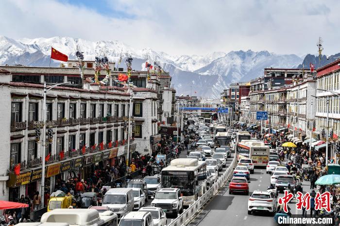 2月21日,拉薩市中心熱鬧街景。中新社記者 貢嘎來松 攝