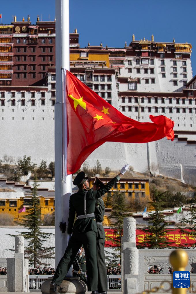 3月28日,拉薩布達拉宮廣場舉行升旗儀式。新華社記者 姜帆 攝