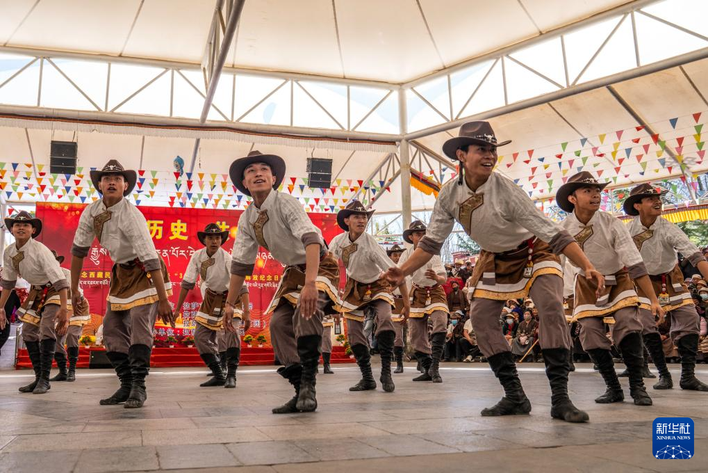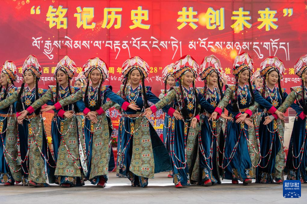 3月28日,群眾在拉薩市宗角祿康公園觀看文藝演出,慶祝西藏百萬農(nóng)奴解放66周年。新華社記者 丁增尼達 攝