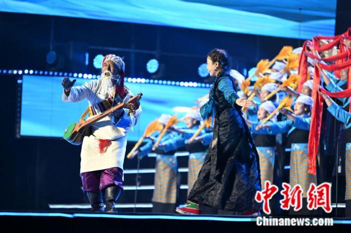2025年3月27日,為紀(jì)念西藏百萬農(nóng)奴解放66周年,“盛世中國 幸福西藏”拉薩市紀(jì)念西藏百萬農(nóng)奴解放66周年群眾合唱比賽,在拉薩市群眾文化體育中心上演。圖為拉薩市林周代表隊(duì)演唱。中新社記者 貢嘎來松 攝