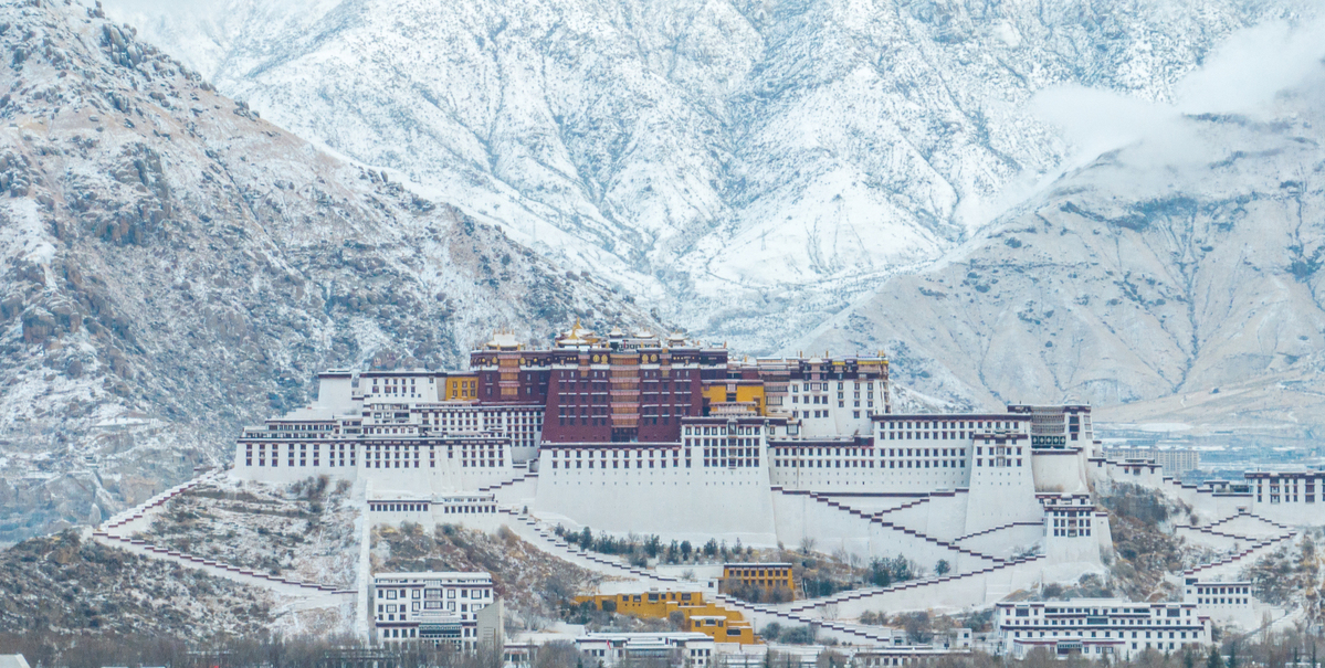 2月16日,無(wú)人機(jī)拍攝的布達(dá)拉宮的雪景。(圖片來(lái)源:新華社)