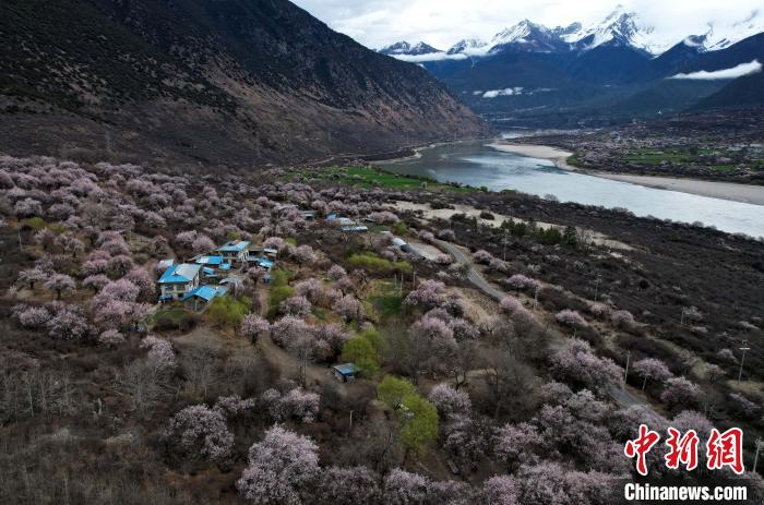 西藏林芝:雅魯藏布江邊桃花盛放 雪山同框美不勝收