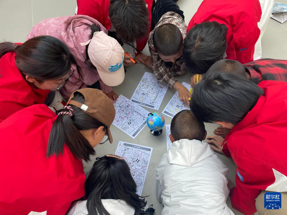 2024年8月31日,張晶晶帶領(lǐng)西部計劃志愿者到兒童福利院和孩子們做益智活動。(受訪者供圖)