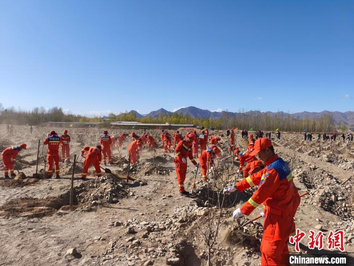 圖為日喀則市森林消防大隊(duì)義務(wù)植樹(shù)活動(dòng)現(xiàn)場(chǎng)。洛桑頓珠 攝