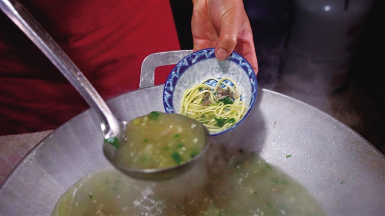 2010年,鹽井加加面被列入西藏自治區(qū)級(jí)非物質(zhì)文化遺產(chǎn)代表性名錄。37歲的果拉卓瑪,是這項(xiàng)技藝的傳承者之一。她回憶道,早年父母在街邊支攤賣(mài)面時(shí),加加面只是再尋常不過(guò)的一道家常面食。如今,這碗面被賦予了文化符號(hào)的意義——食客們比拼碗數(shù),最高紀(jì)錄達(dá)147碗,若破紀(jì)錄,還能終生免費(fèi)吃面?!笆^計(jì)數(shù)、民歌敬酒,這些傳統(tǒng)習(xí)俗讓吃面變成了一場(chǎng)熱鬧的儀式?!惫楷斝χf(shuō)。