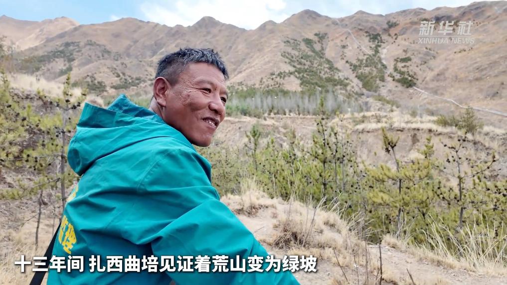 扎西曲培是這里的園區(qū)護(hù)林員,今年已經(jīng)是他守護(hù)這片山林的第十三個(gè)年頭。十三年間,他見(jiàn)證了荒山變?yōu)榫G坡。