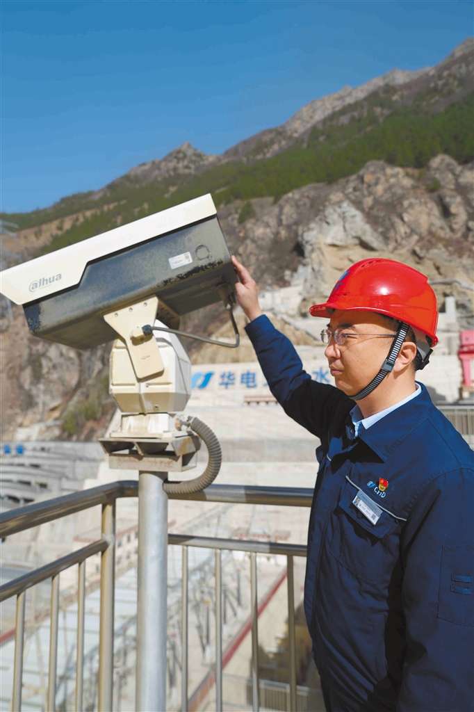 圖為楊立勇對DG水電站工業(yè)監(jiān)控攝像頭進行檢查(資料照片)。