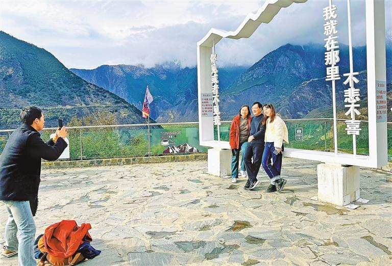 游客在雅魯藏布江大拐彎觀景臺拍照留念。白瑪澤旺 攝