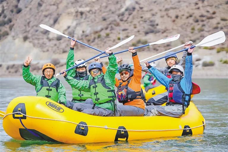 “五一”假期,墨竹工卡唐加鄉(xiāng)騎漂行活動舉行,近30位戶外運動愛好者體驗了13公里騎行、4公里徒步、10公里漂流等項目。圖為戶外運動愛好者體驗10公里漂流項目。鹿麗娟 攝