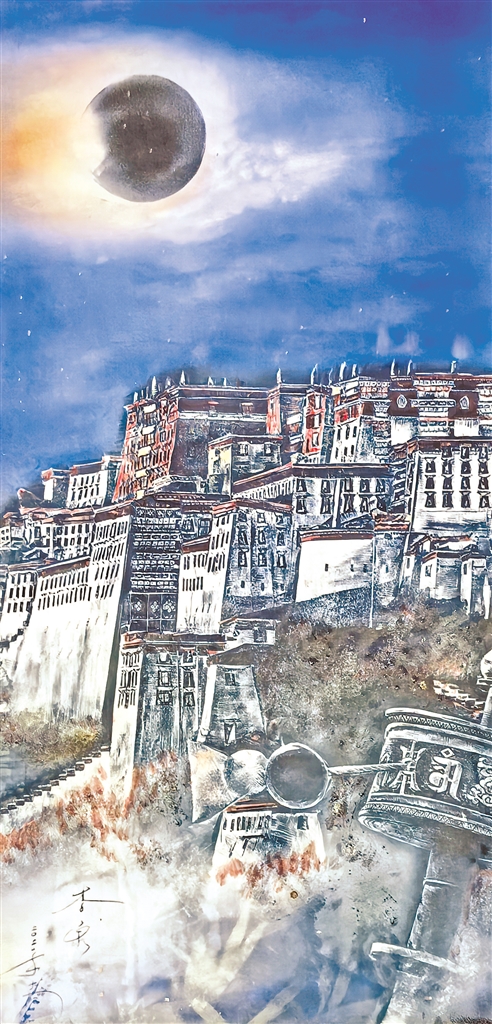 圖為瓷板畫作品《霞光中的布達拉宮》。