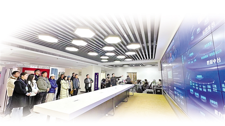 圖為瓊結縣宣傳思想文化系統(tǒng)“鄉(xiāng)村數(shù)字文化”考察組在湖北省宜昌市三峽融媒體中心參觀學習。 記者 次仁平措 本報通訊員 倫珠澤仁 攝