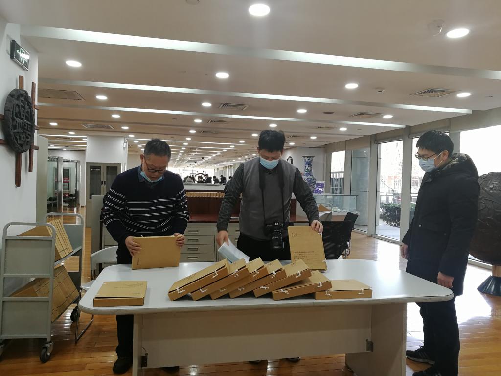 張文朋(中)在檔案館查閱建筑結構圖紙。新華社發(fā)