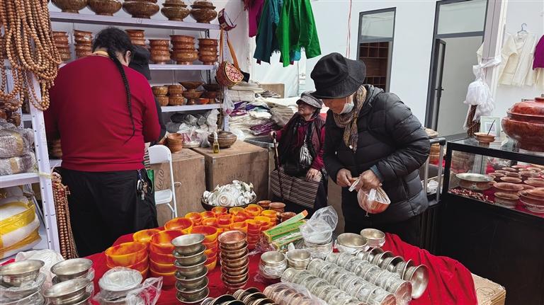 參展商們也在最后一天全力沖刺,來自不同地域、經(jīng)營不同品類商品的商家在展會(huì)上均收獲頗豐。來自尼泊爾的新白瑪塔西綜合商店老板拉魯,此次展銷會(huì)帶來了木碗、玉碗、銅碗等二十多類特色產(chǎn)品。他笑著表示:“銷量挺不錯(cuò)的,我們家的產(chǎn)品不僅品類豐富,價(jià)格也實(shí)惠。這已經(jīng)是我第八次來拉薩參加展銷會(huì)了,每次都能感受到拉薩消費(fèi)者的熱情,也收獲滿滿?!?/p>