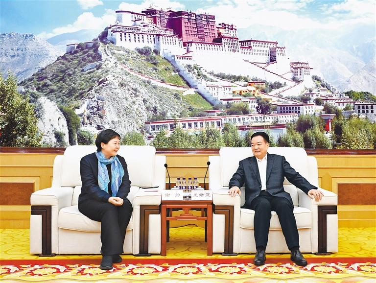 王君正代表自治區(qū)黨委、政府對謝力一行專程赴藏開展慰問演出表示歡迎,對中國文聯長期以來給予西藏的關心支持表示感謝。他說,黨的十八大以來,以習近平同志為核心的黨中央高度重視西藏工作,習近平總書記多次作出重要指示批示,為西藏明確了“穩(wěn)定、發(fā)展、生態(tài)、強邊”四件大事,提出了長治久安和高質量發(fā)展的戰(zhàn)略目標,為我們做好工作指明了前進方向、提供了根本遵循。十屆自治區(qū)黨委深入貫徹落實習近平總書記關于西藏工作的重要指示和新時代黨的治藏方略,持之以恒抓好“穩(wěn)定、發(fā)展、生態(tài)、強邊”四件大事落實,努力推動經濟社會發(fā)展各項事業(yè)不斷取得新成績,長治久安的基礎更加穩(wěn)固,高質量發(fā)展保持良好勢頭,主要經濟指標增速位居全國前列,生態(tài)保護扎實推進,邊境地區(qū)建設不斷加強,民生福祉持續(xù)增進,全社會呈現出一派欣欣向榮的良好發(fā)展景象。