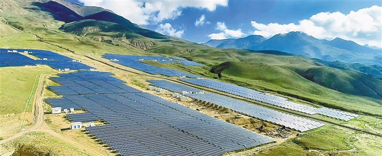 在措美縣城東、西兩側(cè)的山坡上,一排排光伏發(fā)電板在陽光的照射下熠熠生輝。措美縣全年日照強、降水少,年均日照時數(shù)超2800小時,擁有豐富的太陽能資源。近年來,措美縣大力發(fā)展光伏發(fā)電產(chǎn)業(yè),實現(xiàn)綠色低碳發(fā)展,讓高原變身“綠電藍(lán)海”。截至目前,措美縣共建設(shè)有光伏電站3座,總裝機容量達(dá)到70MW。自2017年第一座光伏電站并網(wǎng)發(fā)電至2024年底,累計發(fā)電量超3.4億千瓦時,相當(dāng)于節(jié)約標(biāo)準(zhǔn)煤約4.2萬噸,減少二氧化碳排放約33.9萬噸。