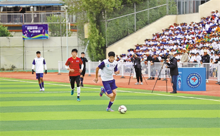 以球為媒,“球”同存“誼”。5月20日下午,中國日喀則市珠峰雪鷹隊與阿根廷薩爾塔普納隊在日喀則市上海實驗學校體育場上演了一場跨越山海的青少年足球友誼賽。賽場上,雙方球員迅速進入狀態(tài),團結配合、積極拼搶,用細膩的腳法,或急停、或變向、或假動作,輕松晃過對手,射門得分,給觀眾呈現(xiàn)了一場精彩的足球比賽。