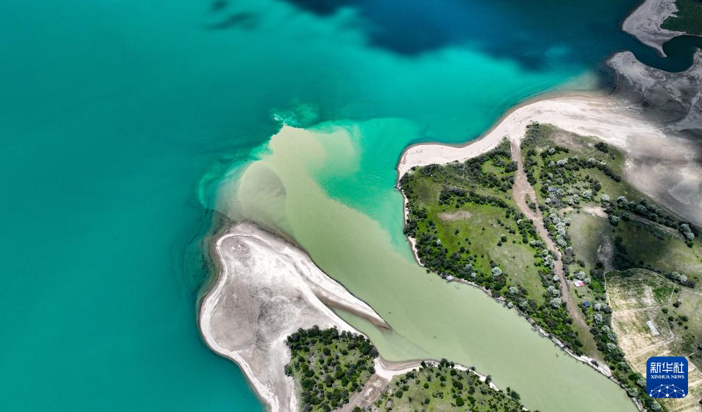 雪山環(huán)抱的巴松措(5月28日攝,無人機照片)。新華社記者 晉美多吉 攝
