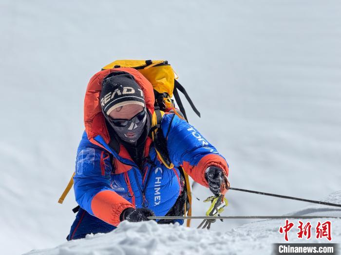 近日,登山團(tuán)隊(duì)成員攀登珠穆朗瑪峰。張馨苑供圖