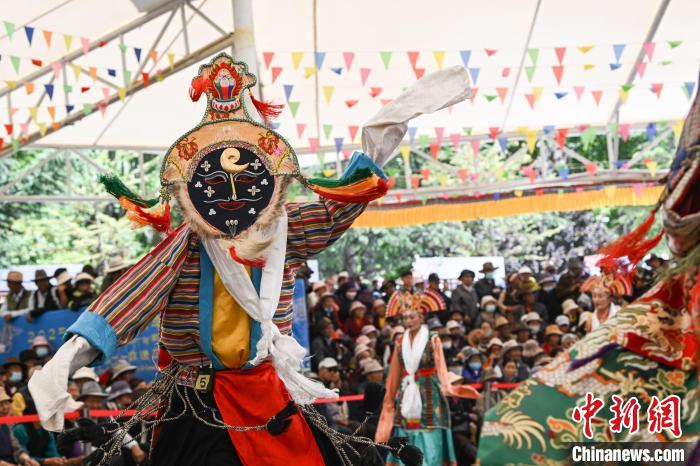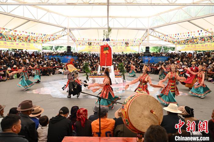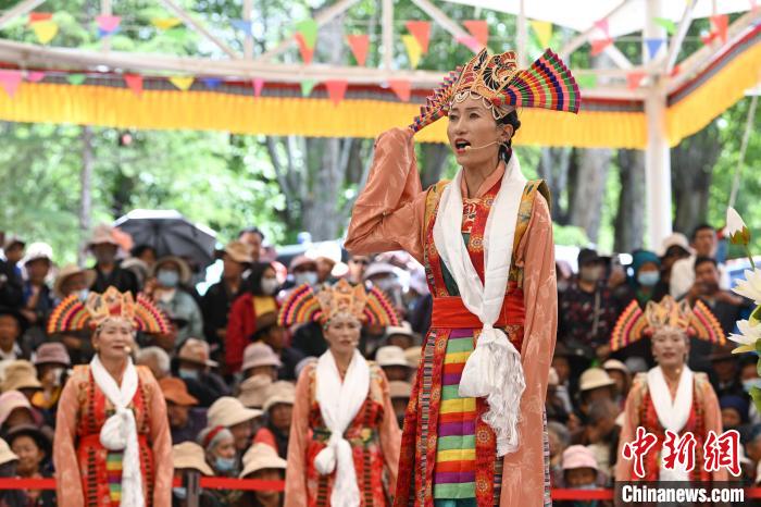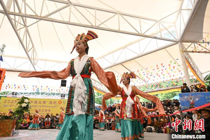 圖為藏戲《智美更登》表演現(xiàn)場(chǎng)。中新社記者 貢嘎來(lái)松 攝