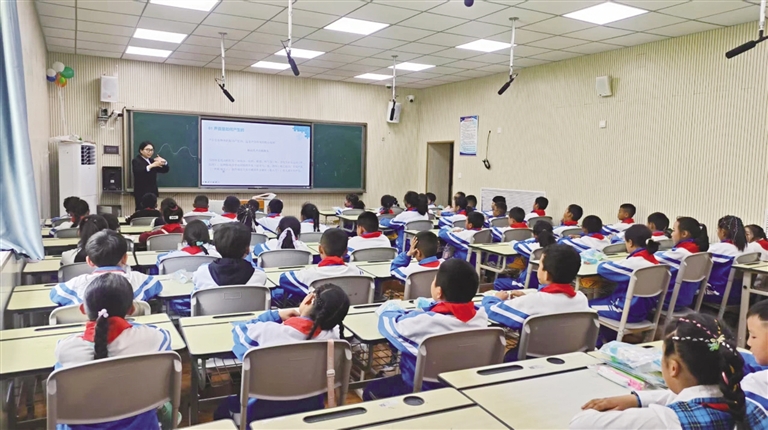 本次活動以單課時科普課程為載體,聚焦“聲音是如何產生的”“聲音為什么會不同”“聲音是如何傳播的”“我們是如何聽到聲音的”四大核心問題,針對小學三至五年級學生不同的知識儲備,設計出“排簫音調實驗”“鼓膜振動模型”“八弦琴音色對比”“簡易擴音器制作”“真空罩聲音衰減”5個生動有趣的科學實驗,分層實施教學,激發(fā)了學生們探索科學的濃厚興趣。