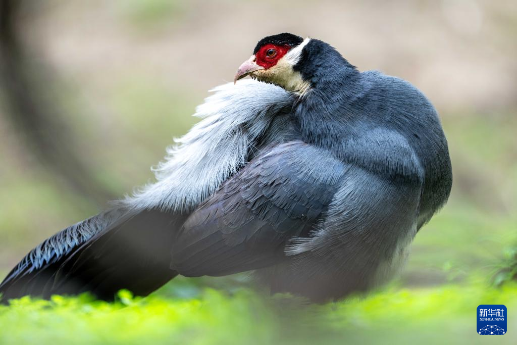 一只藏馬雞在林間覓食(6月17日攝)。新華社記者 旦增尼瑪曲珠 攝