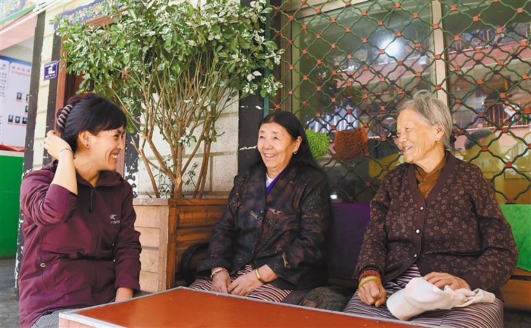 改造不僅改善了居住條件,更密切了鄰里情誼。午后,老人們坐在長(zhǎng)椅上曬太陽(yáng),孩子們?cè)谠鹤永镦覒蛲嫠?,婦女們?cè)谒堫^旁一邊洗衣一邊說笑。普布普赤說:“居住條件越來越好,大家心齊氣順,大院里漢、藏、回等多個(gè)民族的居民,相處得也十分融洽?!?/p>