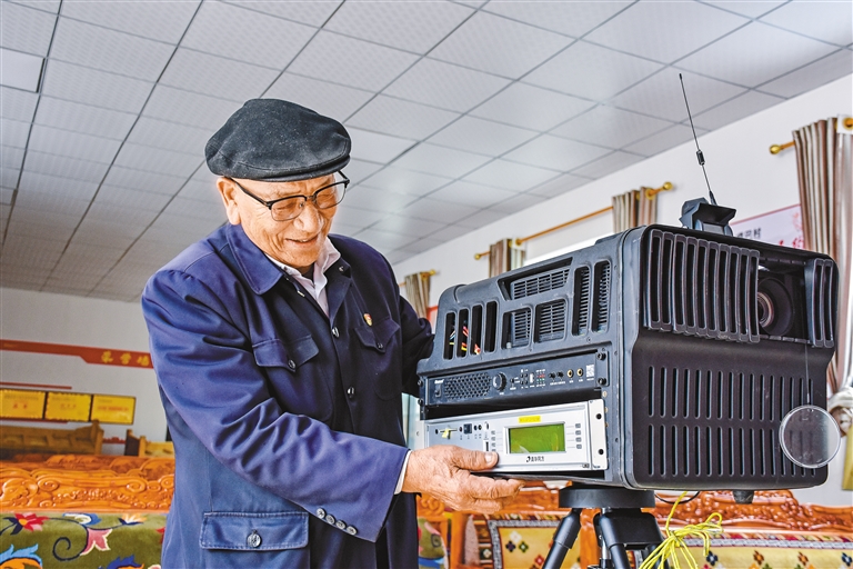 “電影放完了,大家都還舍不得走,有些村民開玩笑,假意不讓我?guī)ё叻庞硻C(jī),請(qǐng)求我放第二場(chǎng)、第三場(chǎng)。他們喜歡看,我也樂意放,多的時(shí)候,一天要連續(xù)放四場(chǎng)。其中最受歡迎的就屬《南征北戰(zhàn)》《戰(zhàn)上?!愤@類戰(zhàn)斗片、抗戰(zhàn)片了?!闭f(shuō)話間,仁真平措黝黑的臉頰紅暈泛開來(lái),笑容里滿是對(duì)往昔的回憶。