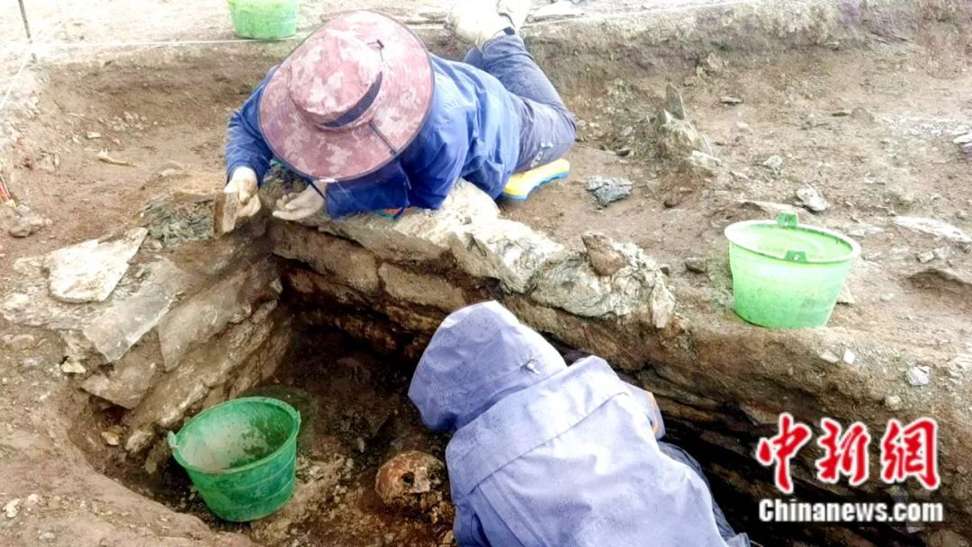 工作人員清理瑪不錯遺址墓葬。受訪者供圖