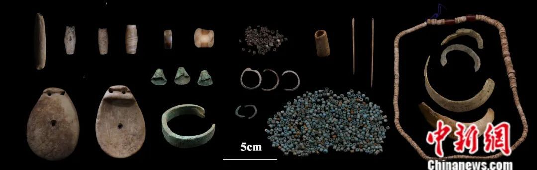 瑪不錯遺址第二期遺物(石質(zhì)、骨質(zhì)、金屬裝飾品,骨針、滑石珠、紅玉髓、玻璃珠等)。受訪者供圖