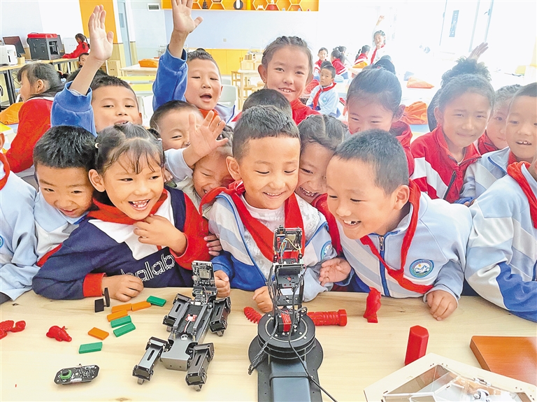 在桑珠孜區(qū)青島小學(xué)的科學(xué)課堂上,智能實驗臺前圍滿了興致勃勃的孩子,他們手持 3D 打印筆,精心繪制著心中的“太空基地”。作為西藏首個啟動“ STEM ”科學(xué)課程的地區(qū),這里不僅建成了全區(qū)首個小學(xué)科創(chuàng)實驗室,還被教育部認(rèn)定為西藏唯一的全國“白名單”科創(chuàng)賽事基層組織單位?!耙郧?,孩子們只能從課本上了解實驗,現(xiàn)在能親手操作機(jī)器人、設(shè)計航天模型。”青島小學(xué)黨支部書記周杰介紹道??苿?chuàng)課程的開展,如同一把鑰匙,打開了孩子們創(chuàng)新思維和科學(xué)探索的大門,為高原青少年搭建起展示科學(xué)素養(yǎng)與創(chuàng)新能力的舞臺,推動當(dāng)?shù)亟逃聵I(yè)邁向新高度。