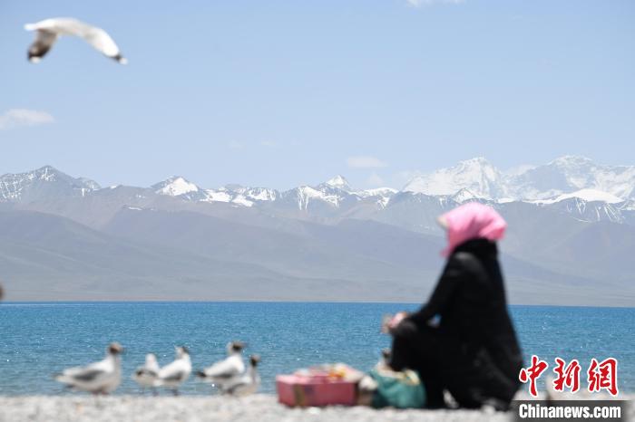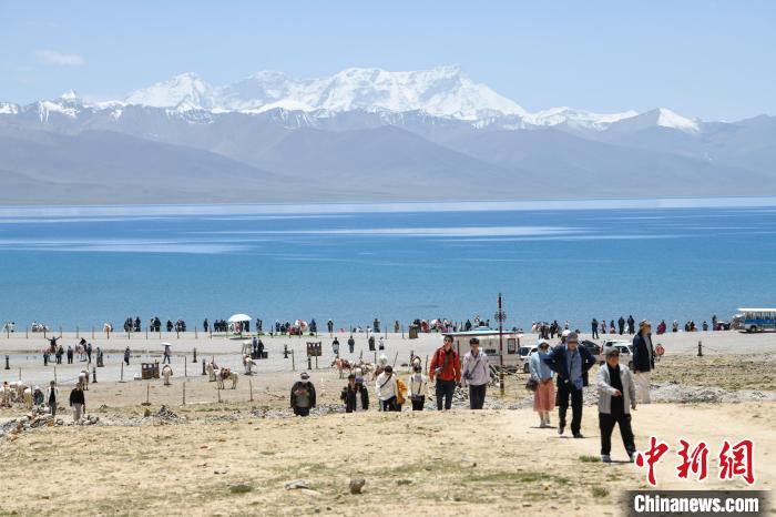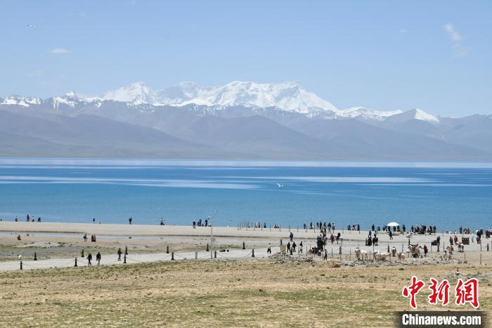 圖為游客在納木錯湖邊游玩。中新社記者 貢嘎來松 攝