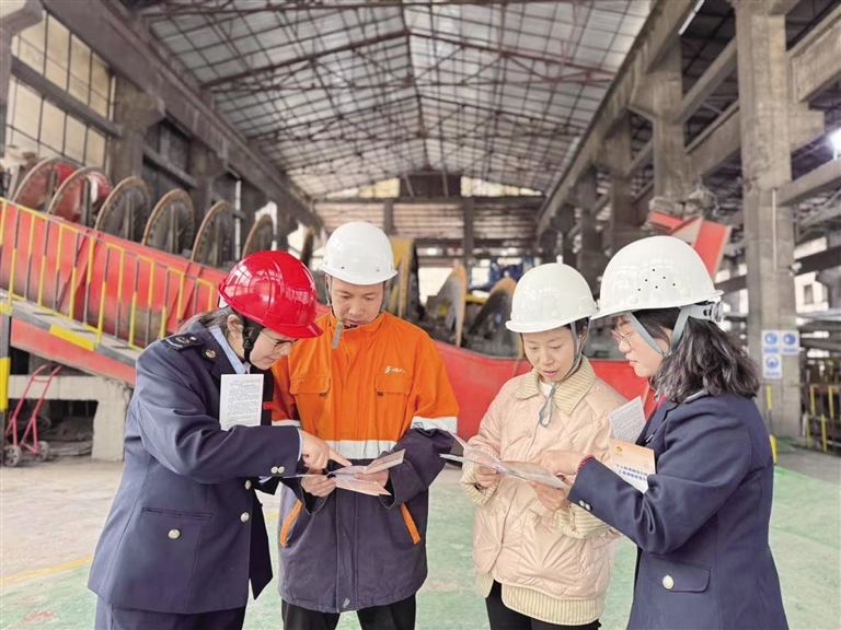稅務(wù)工作人員在礦山企業(yè)生產(chǎn)經(jīng)營(yíng)場(chǎng)所開(kāi)展稅費(fèi)宣傳。圖由自治區(qū)稅務(wù)局提供