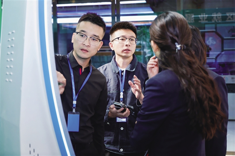 數(shù)字技術(shù)應(yīng)用體驗(yàn)展區(qū)工作人員正在講解AI技術(shù)應(yīng)用。