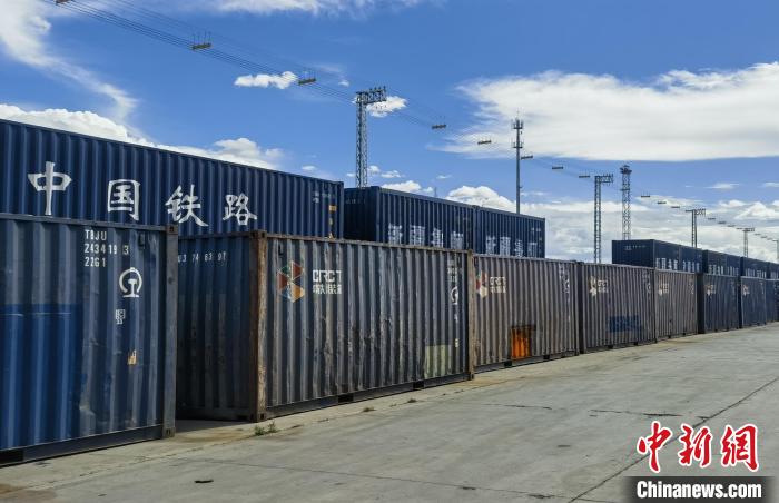 圖為6月29日,西藏日喀則西站內集裝箱整齊排列。耿柳燕攝