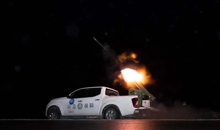 拉薩市人工影響天氣領(lǐng)導小組辦公室工作人員正在實施作業(yè)。圖由拉薩市氣象局提供